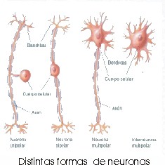 Las neuronas son las células principales del cerebro y en general, del sistema nervioso. Son de muy diversas formas, variando desde la disposición en forma de estrella a la de pirámide. Las partes constitutivas de la neurona son el cuerpo celular, la membrana celular, las dendritas, el cono del axón, el axón y los botones sinápticos.